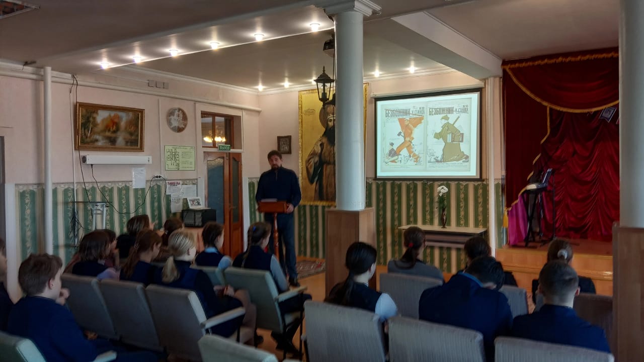 24 января 2023 года в Православной гимназии им. Свт. Тихона Задонского г. Ельца состоялось мероприятие, посвященное истории русской православной церкви в годы Советской власти. Доцент кафедры истории и историко-культурного наследия ЕГУ им. И.А. Бунина Д.В. Щукин рассказал о гонениях на церковь, непростой судьбе священнослужителей и пропаганде атеизма. Учащиеся проявили живой интерес и задавали вопросы. Мероприятие сопровождалось показом богатого иллюстративного материала. Сотрудничество с гимназией проходит в рамках работы педагогического класса кафедры истории и историко-культурного наследия. Выражаем благодарность коллективу Православной гимназии за радушный прием и плодотворное взаимодействие.