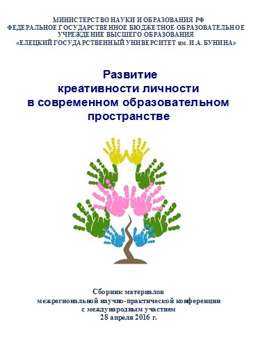 В издательстве Елецкого государственного университета им. И.А. Бунина вышел в свет сборник материалов межрегиональной научно-практической конференции с международным участием «Развитие креативности личности в современном образовательном пространстве» состоявшейся в стенах нашего университета 28 апреля 2016 г.
