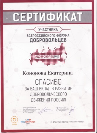 С 24 по 27 октября 2016 г. в Санкт-Петербурге прошел Всероссийский форум добровольцев, который собрал на одной площадке более 1 500 волонтеров разных возрастов из 85 регионов.