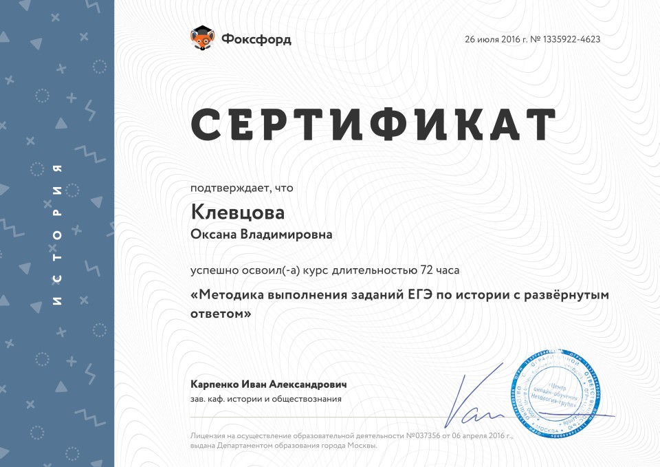 Выполняя требования ФГОС нового поколения и развивая современный подход к образованию на основе онлайн итнтерактивных методах обуче-ния, преподаватели Института истории и культуры (Матвиенко В.А., Мальцева В.А., Клевцова О.В., Щукин Д.В.) прошли курсы повышения кевалификации Центра онлайн-обучения Нетология групп (университет «Фоксфорд») г. Москва. В рамках обучения проходили консультации с ведущими преподавателями страны, решались тестовые и контрольные за-дачи, выполнялись мультимедийные проекты.
